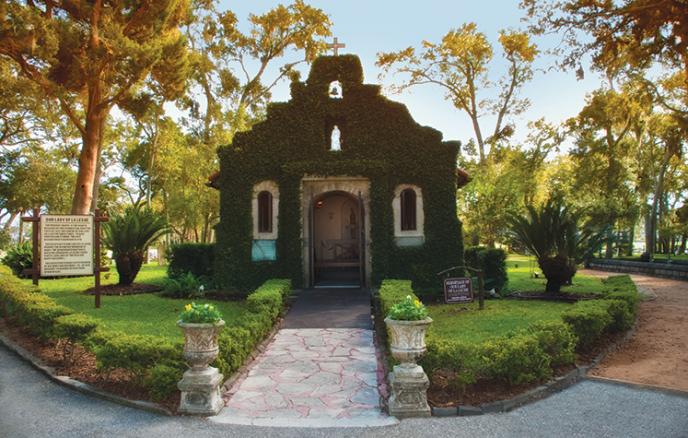 This unusual sight is a wink from Mother Nature. Amazingly, a palm tree has grown through the center of a live oak tree. The natural embrace inspired a legend that says couples who kiss below the tree will seal their love for eternity.