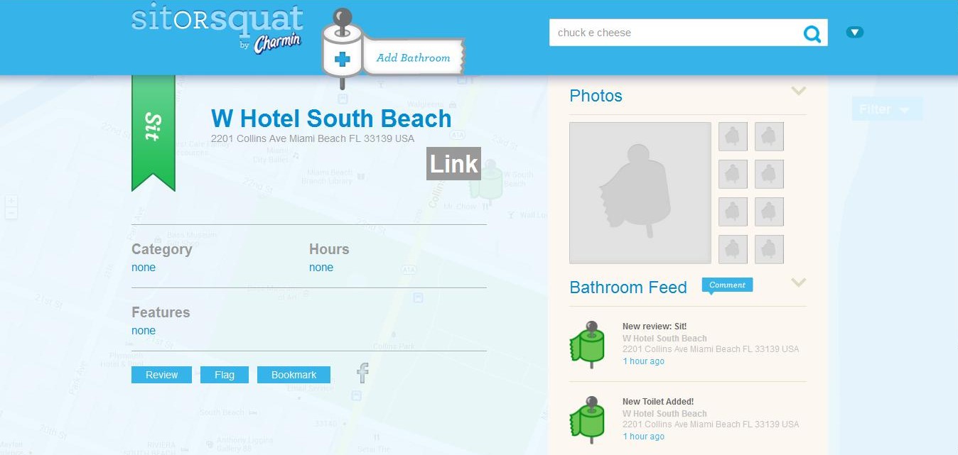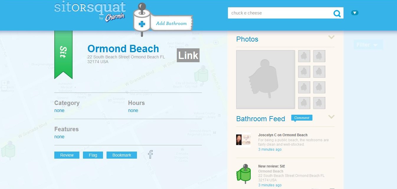 The free app allows users to share information on the availability, quality and cleanliness of public restrooms in cities across the country. The app now includes features and information about locations, ratings, photos and helpful hints for more than 125,000 public bathrooms throughout the United States. Sit or Squat allows users to find restrooms with specific features, i.e., changing tables and handicap access etc. Users can add a new location and then rate their experience by designating that restroom as a “Sit” (for an enjoyable bathroom) or a “Squat” (for a restroom that could be better), based on the cleanliness and overall experience. Comments and uploading photos can be done directly on the app too.