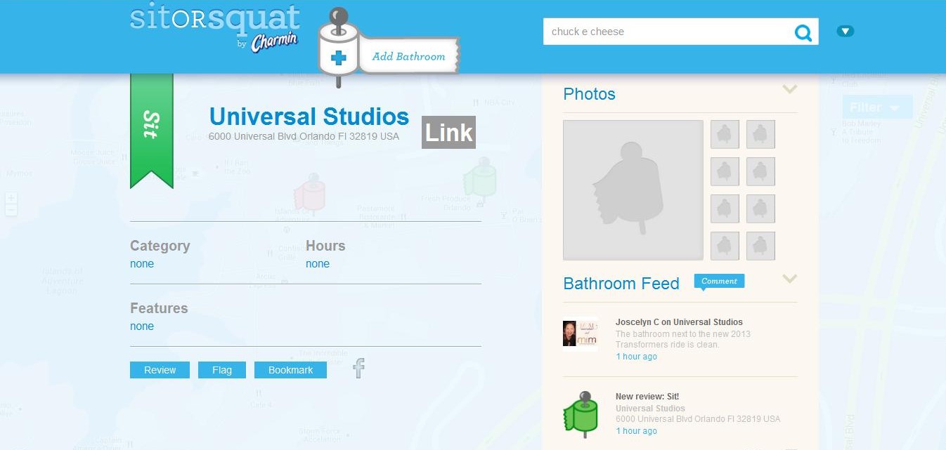 As Charmin’s Sit or Squat Orlando Editor, the following are some of the bathrooms we reviewed throughout Central and South Florida: