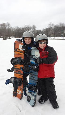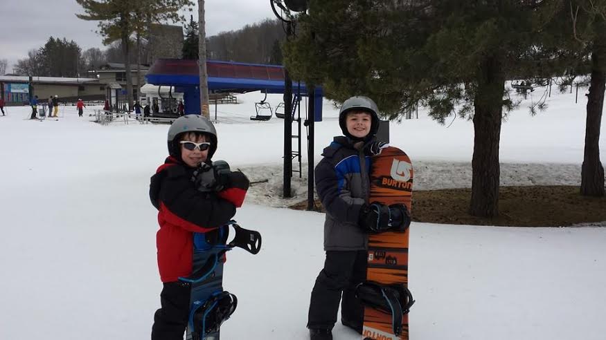 Though Boyne has awesome fudge and a fantastic  waterpark, the highlight of our vacation was the day my boys learned to snowboard. Boyne Mountain Resort is home to the SnowSports Academy, where you can take customized, professional lessons in skiing and snowboarding.  My boys have been wanting to learn to snowboard since they saw their first winter olympics four years ago.  Everytime snowboarding is on television, they are mesmerized by it. By nature, I am not a winter person. Despite growing up in the bitter Midwest, I have never really liked winter.  However, being able to watch my boys learn to snowboard and then come down on the board by themselves, was an amazing rush of joy!  Ryan and Liam are very active, but I had my reservations about whether or not a 7 and 8-year-old would actually take to the sport.  The boys loved it and begged to go again. The small hill was perfect for them and the “magic carpet” carried them up on their own. They learned to stop, turn, put on all their equipment and cruise down the hill on their own. They hated to see their 2 hour session end so you can guess what they will be doing on our next trip back to Boyne Mountain!  To learn more about lessons, visit http://www.boyne.com/boynemountain/skiing-riding/lessons.