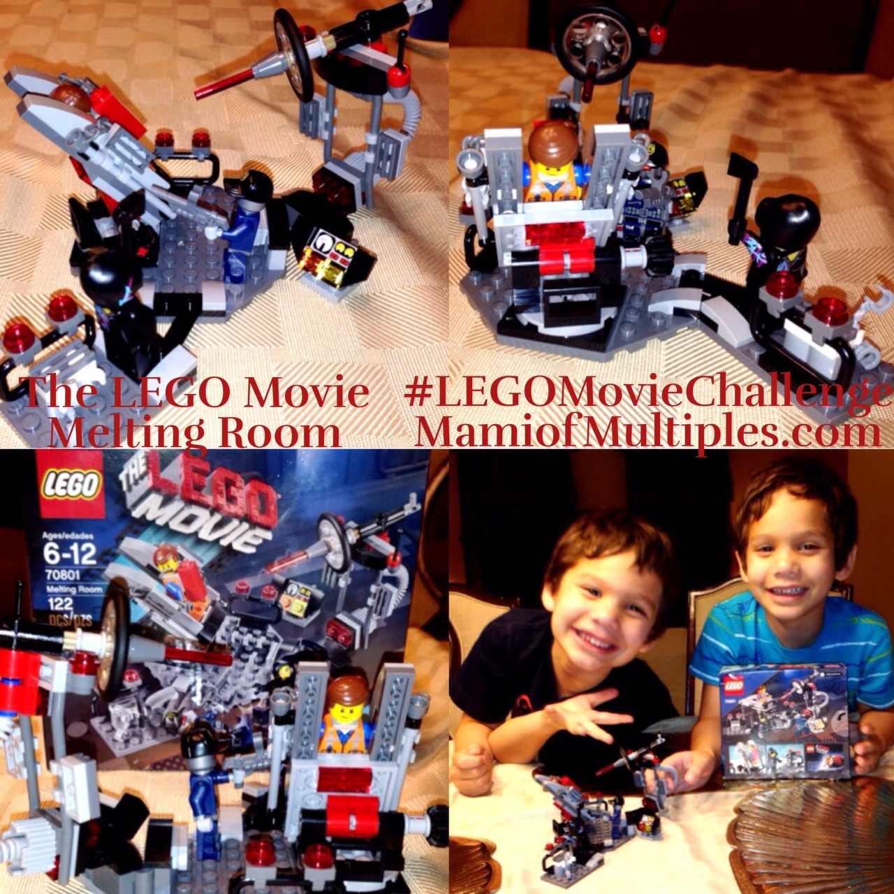 The challenge was to build a LEGO set that was from a scene depicted in THE LEGO MOVIE.  The sets were age-appropriate according to the age of the children helping to build the set.  With the twins being kindergarten aged we picked The LEGO Movie Melting Room (Ages 6-12, 122 pieces).