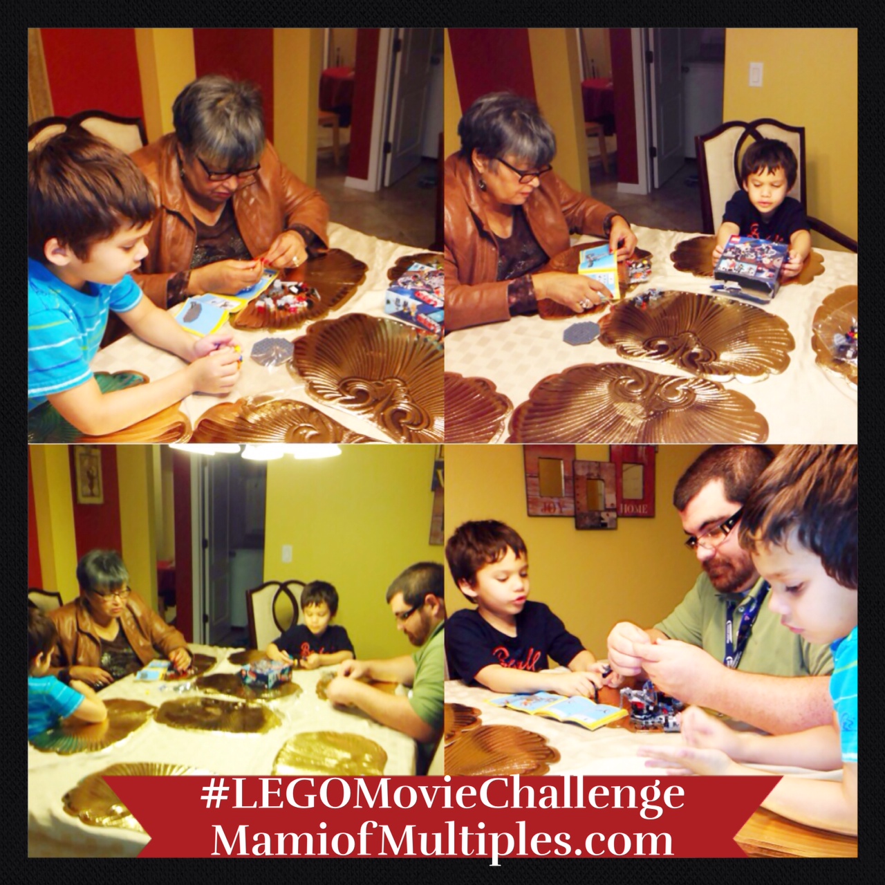 Thanks to the efficient assistance of Dad and Mama (Grandma), the twins quickly started to section the LEGO pieces together.  The colorful drawings in the instructions booklet really helped the twins to visualize ideas of what the final look should be for the Melting Room scene.  They loved being able to assemble something from the start to a finished creation and to have the older family members join in on the fun – (the LEGO sets are a great opportunity to spend quality family time and/or to create a family project together too).