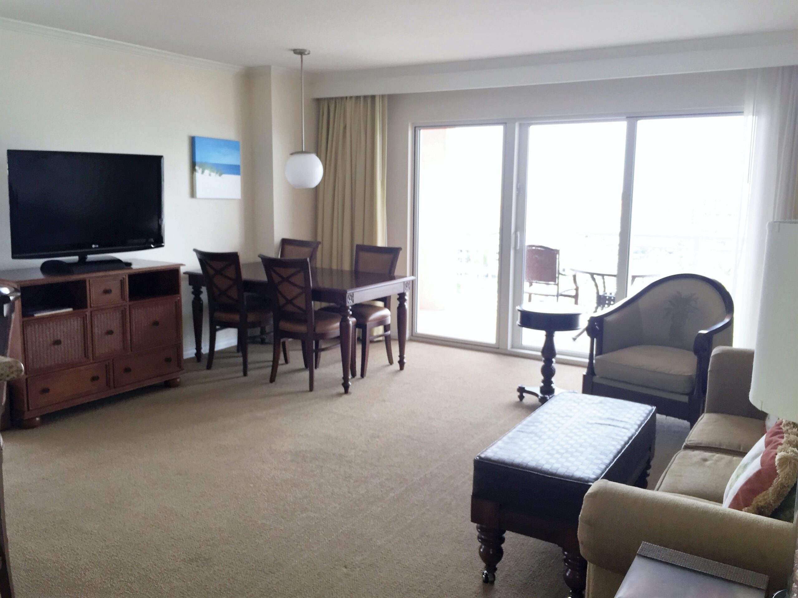 The resort has wonderful oversized condo-style rooms and suites with fully equipped kitchens, offering views of the beautiful Gulf of Mexico in their over 250 guestrooms. We stayed in an ample 1 bedroom 2 queen suite which featured a double bathroom, full-size kitchen with granite countertops, living room area, 2 queen sized beds, a queen sized sleeper sofa and walk-around balconies that overlook the beach.
