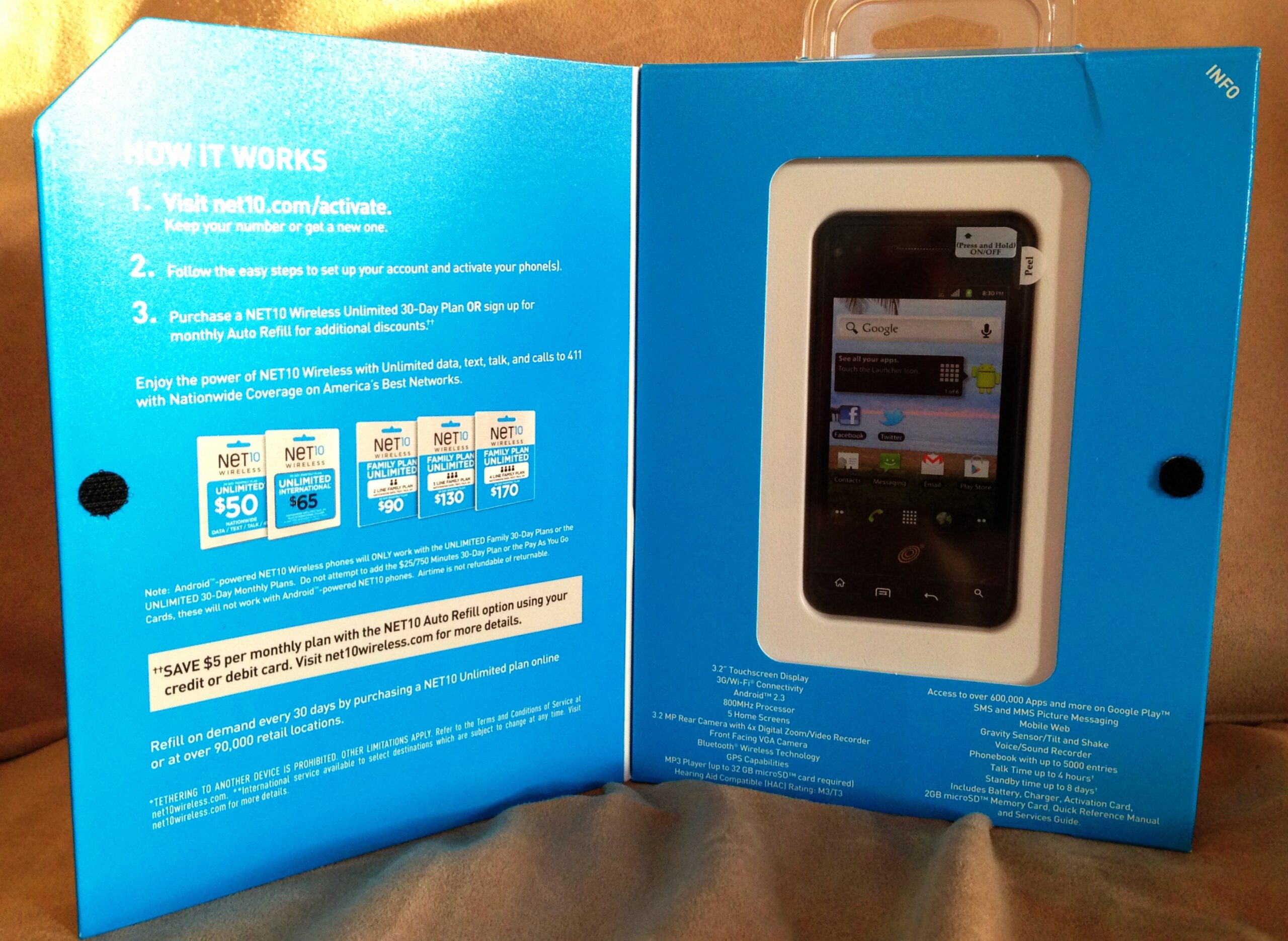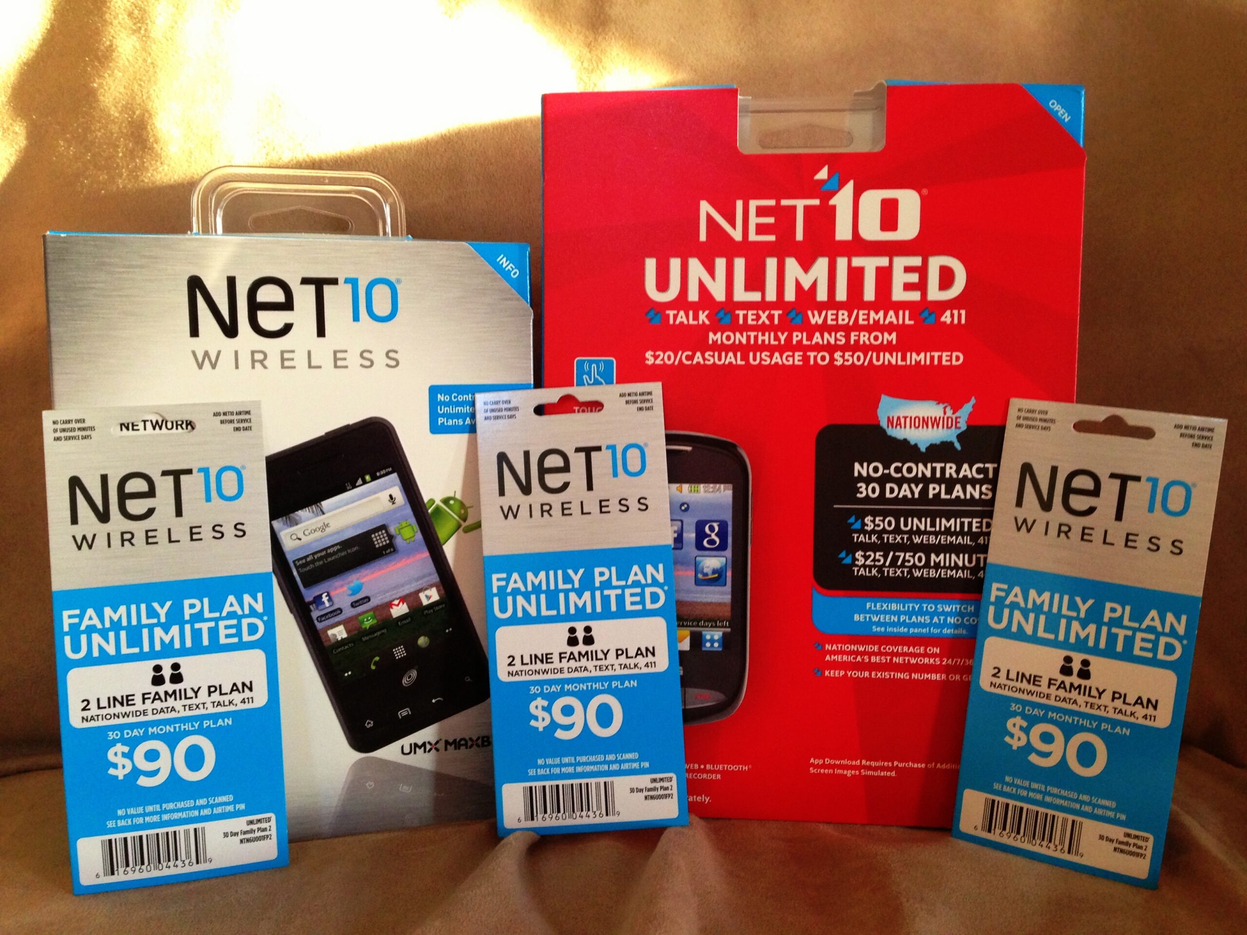 Some of the useful smartphones offered by Net10 for families are the full touch screen LG800G and the Droid UMX MaxBravo along with 90-Airtime Card(s).
