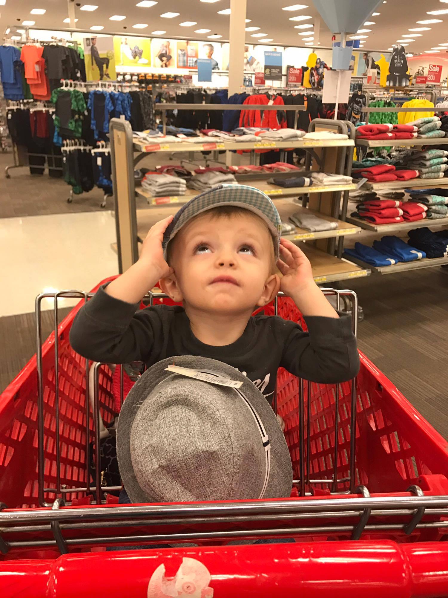 I took my youngest, Micah, on a shopping trip to Target to find him a comfortable and cute Valentine’s Day outfit. He had a lot of fun trying on some of the newest gear as we rolled by many of the great selections.